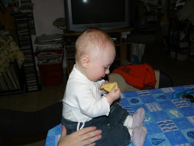 Et sinon Soline mange suce son première aliment solide : de la brioche (elle a bon goût cette gamine non)